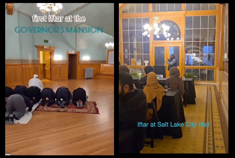Then there’s Utah’s Governor and Salt Lake City’s Mayor. These top politicians mirrored the actions of NYC Mayor Zoran Mamdani. All three hosted the first-ever Ramadan Iftar dinners in their private residences and city hall.