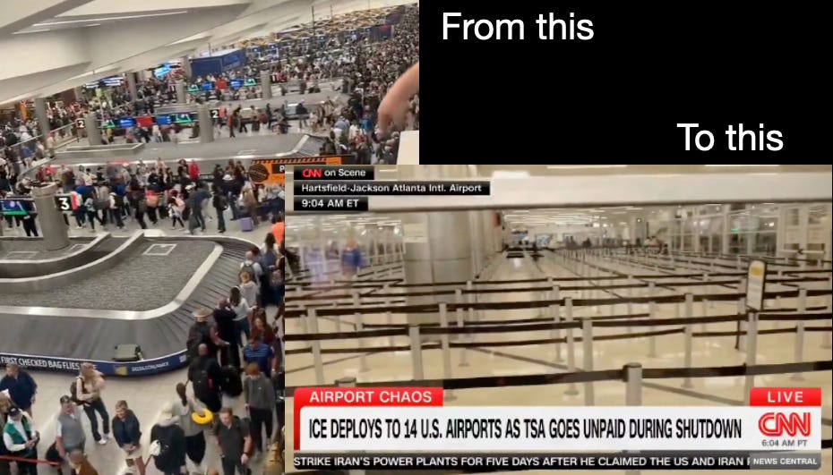 The shutdown continues, as Democrats refuse to fund Homeland Security and TSA. The sticking point, they claim, is ICE—even though ICE has already received funding for the next three years.